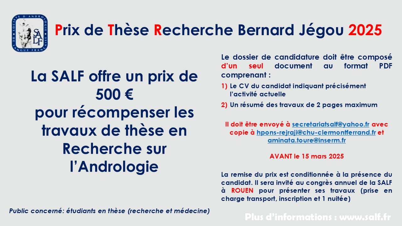 Les prix Junior SALF /Prix Bernard Jegou SALF