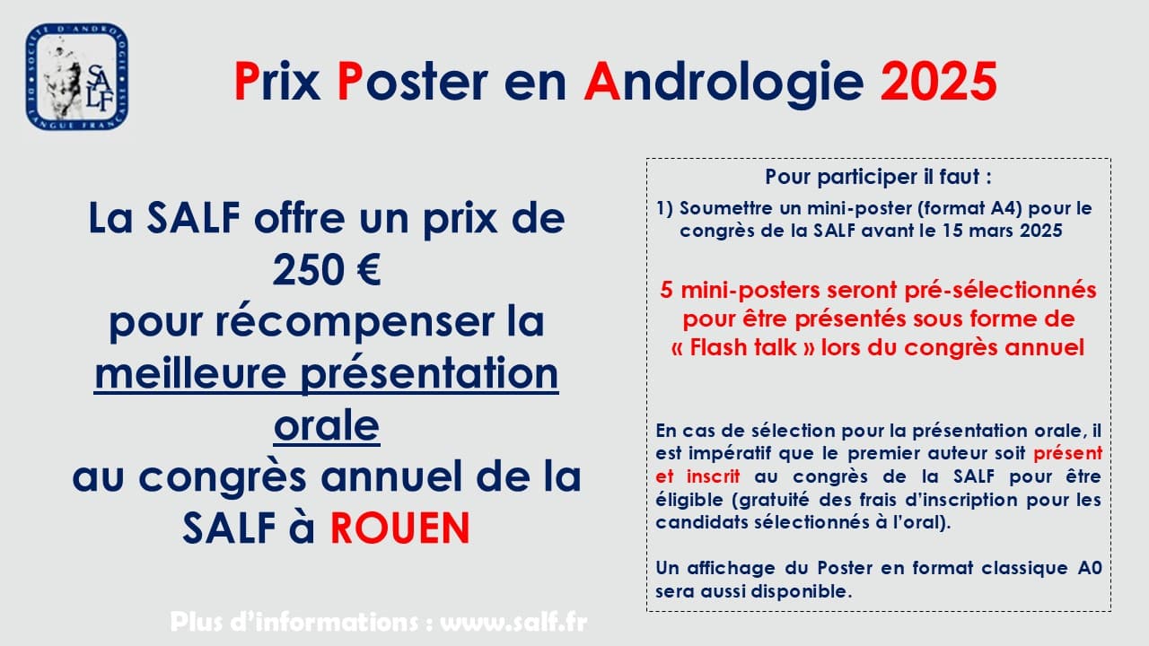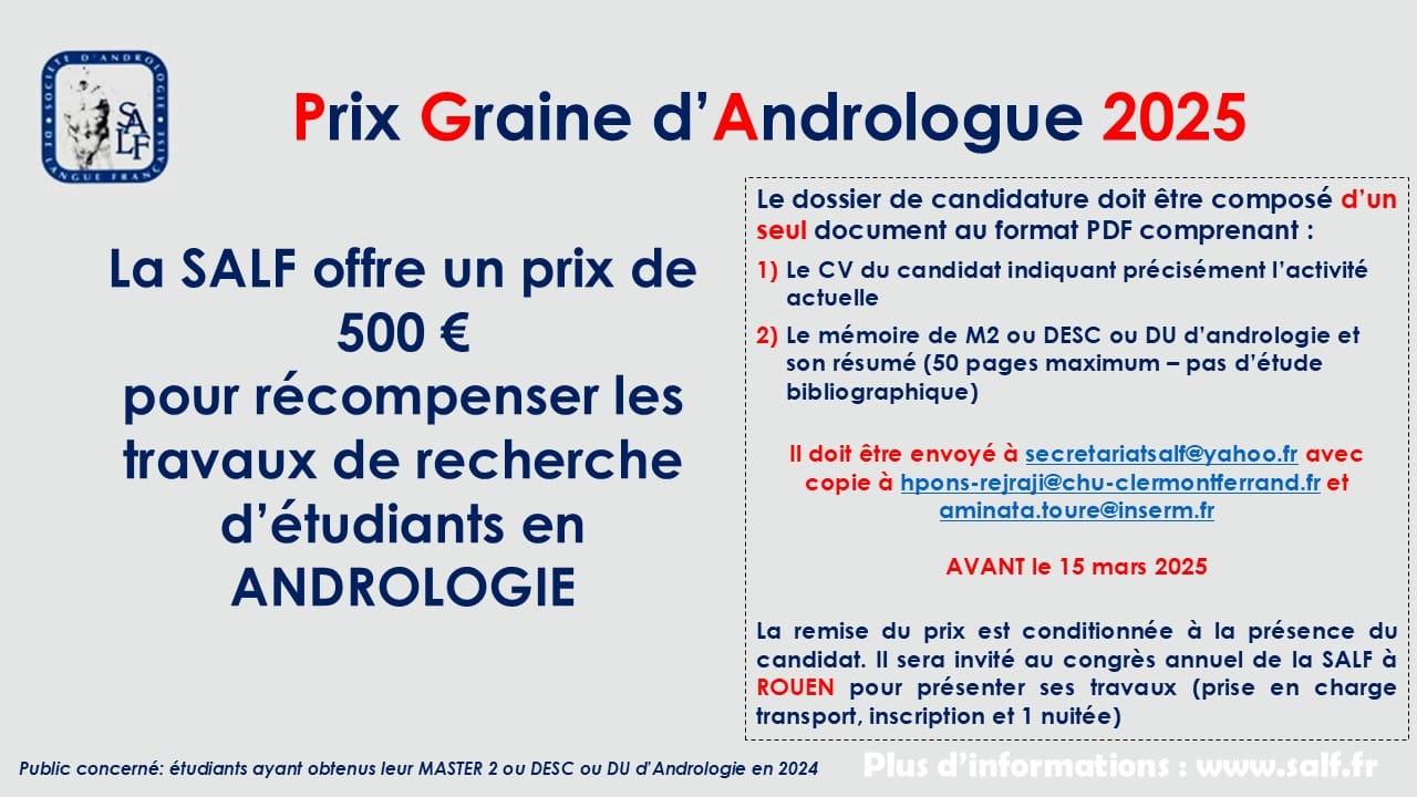 Le prix “Graine d’Andrologue” d’un montant de 250€ a été attribué pour le projet : Exploration de l’infertilité masculine : Etude du